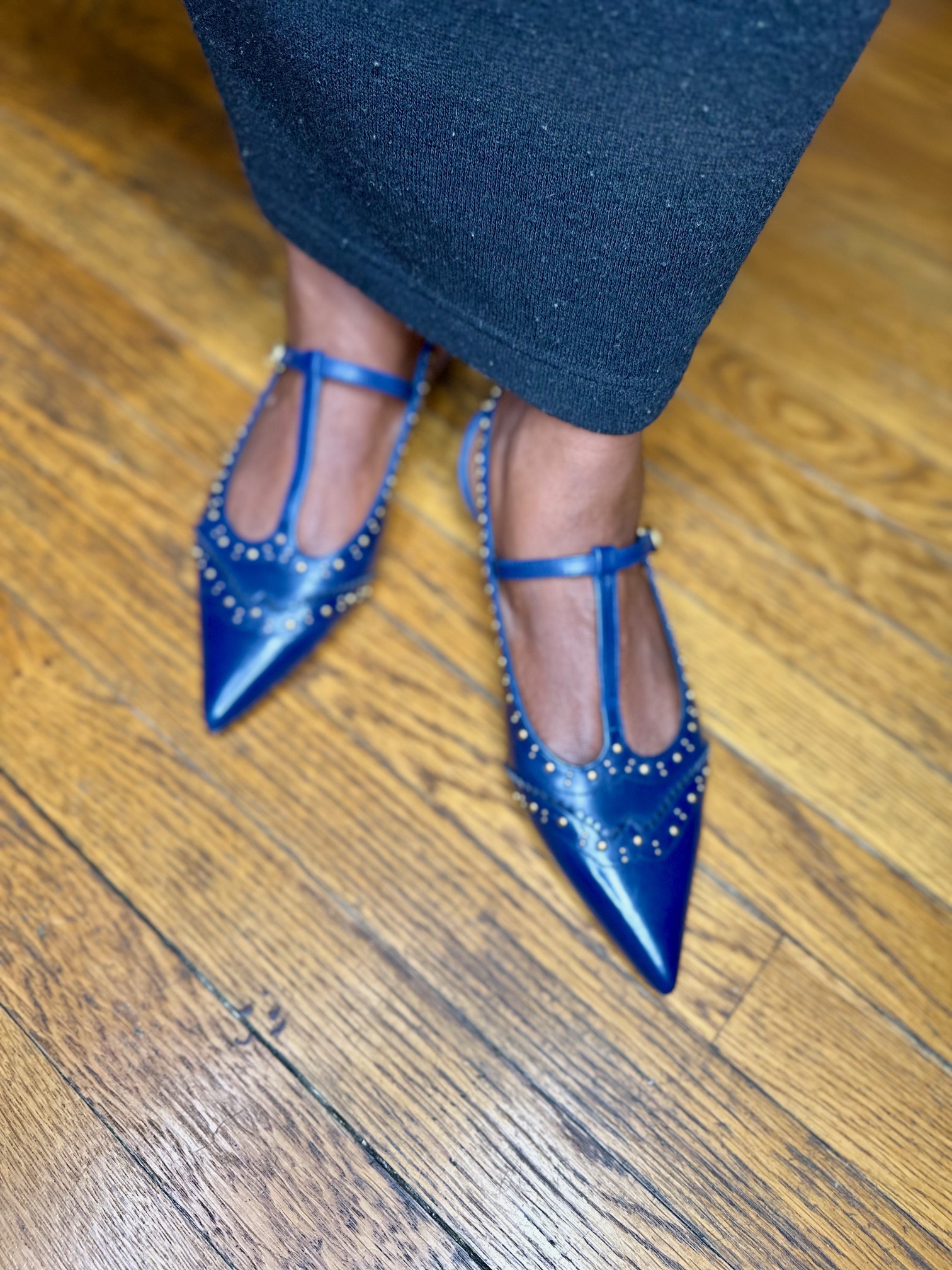 - Intentional design: Almond, pointed, or elongated toe, never rounded and soft (save ballet flats for weekends and personal travel)
